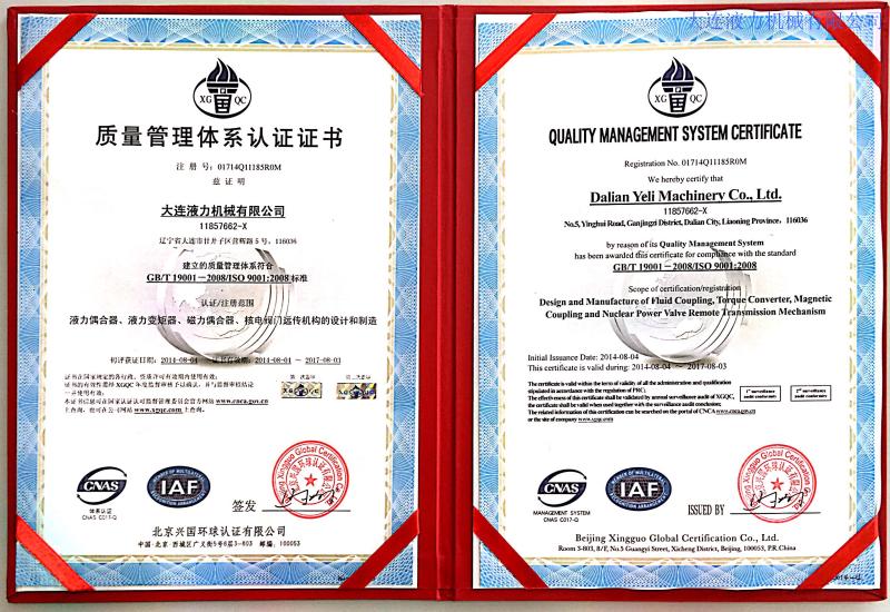 大連液力機(jī)械有限公司曾多次被評(píng)為省、市級(jí)先進(jìn)企業(yè)、文明單位;遼寧省“用戶滿意企業(yè)”、曾獲“遼寧五一獎(jiǎng)狀”,企業(yè)信譽(yù)良好,產(chǎn)品品牌廣為認(rèn)可。公司建立了完善的研制開發(fā)和質(zhì)量保證體系,在國(guó)內(nèi)液力行業(yè)較早通過ISO9001質(zhì)量體系認(rèn)證和包括職業(yè)健康、安全、環(huán)境三體系認(rèn)證,2015年又通過了國(guó)軍標(biāo)質(zhì)量體系認(rèn)證。企業(yè)連續(xù)二十余年被省、市工商局評(píng)為“重合同、守信用”單位,二〇〇二年獲國(guó)家統(tǒng)計(jì)局“遼寧省信譽(yù)優(yōu)秀企業(yè)”,連續(xù)多年被評(píng)為“AAA”級(jí)信用企業(yè),公司主導(dǎo)產(chǎn)品連續(xù)多年獲遼寧省和大連市名牌產(chǎn)品,2008年至今是大連市高新技術(shù)企業(yè)認(rèn)證企業(yè)。